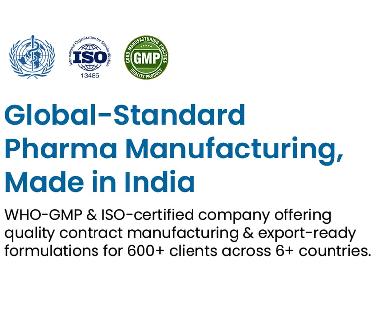 ASPO Pharmaceuticals is established in Baddi, Himachal Pradesh (India). We serve over 600 B2B clients in more than six countries, providing high-quality pharmaceutical and nutraceutical solutions worldwide. Along with this, our ISO-approved pharma manufacturing unit is always known to focus on export and proudly possess WHO-cGMP compliance and certification. This fully ensures the highest quality and global regulatory conformity in all of our products.